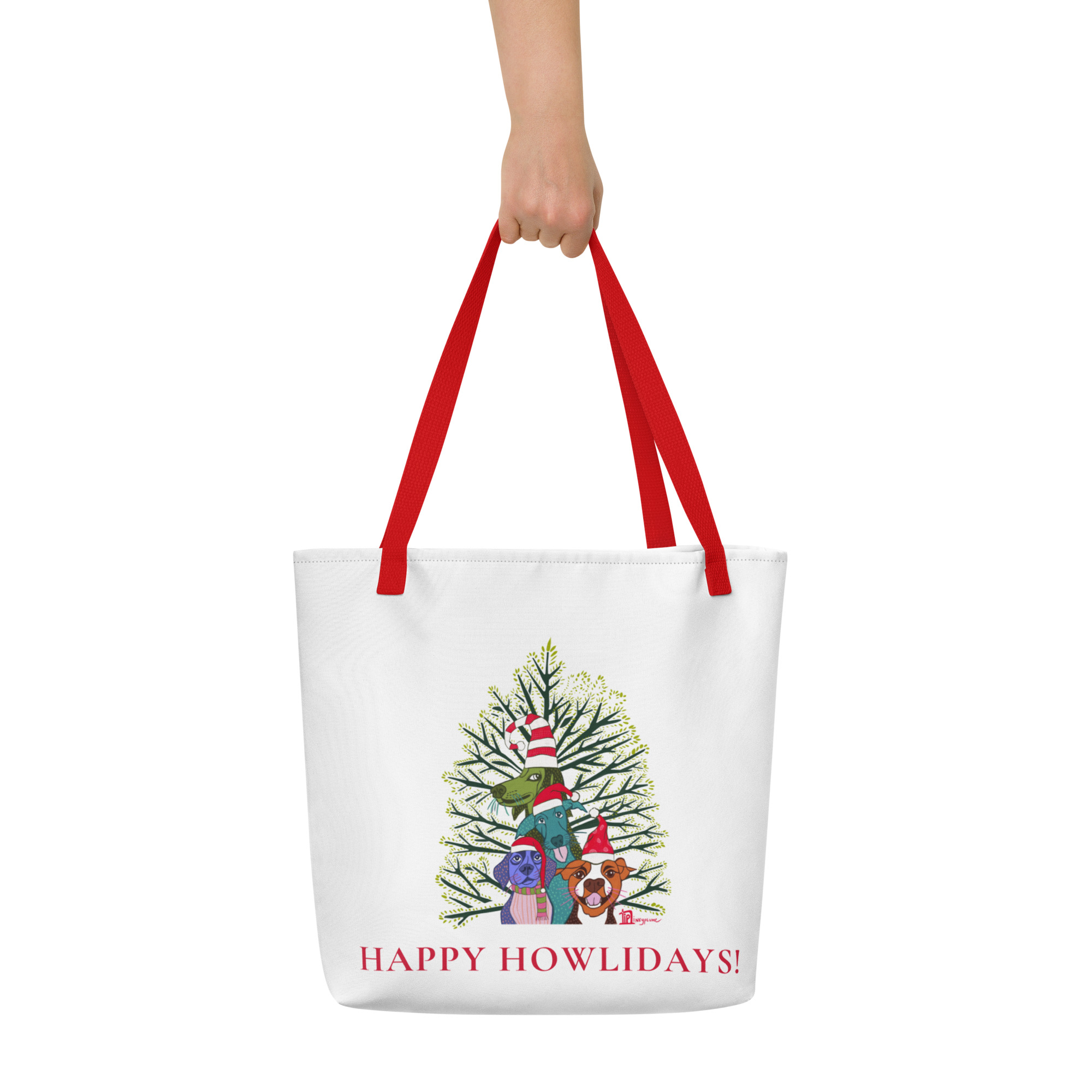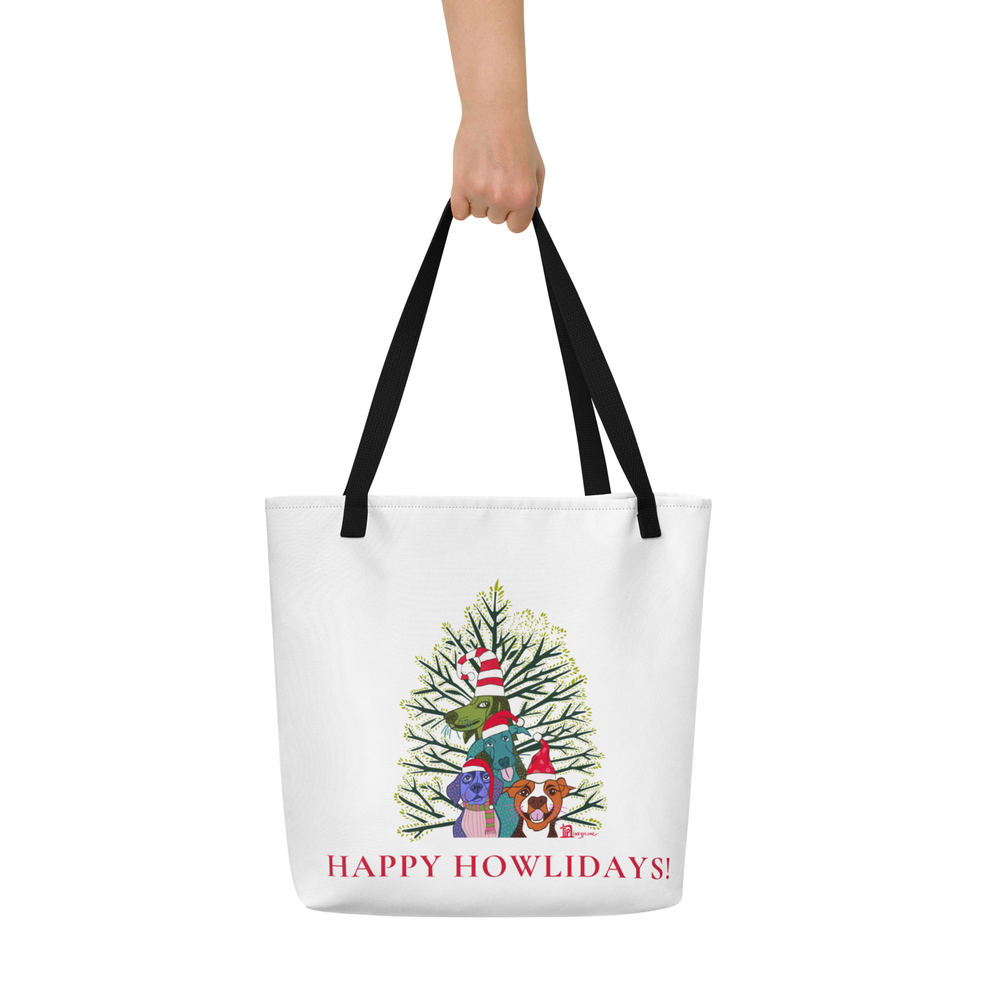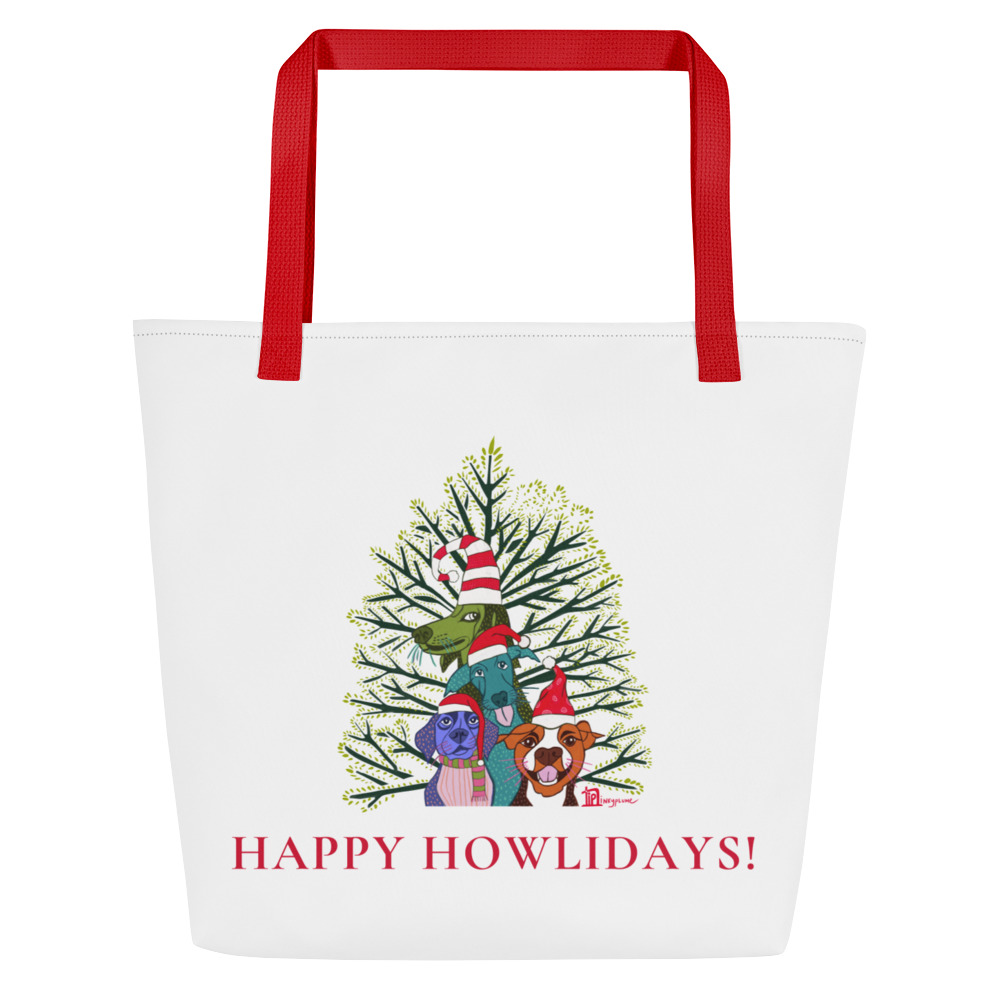 Happy Howlidays! (White) – Large Tote Bag with Inside Pocket