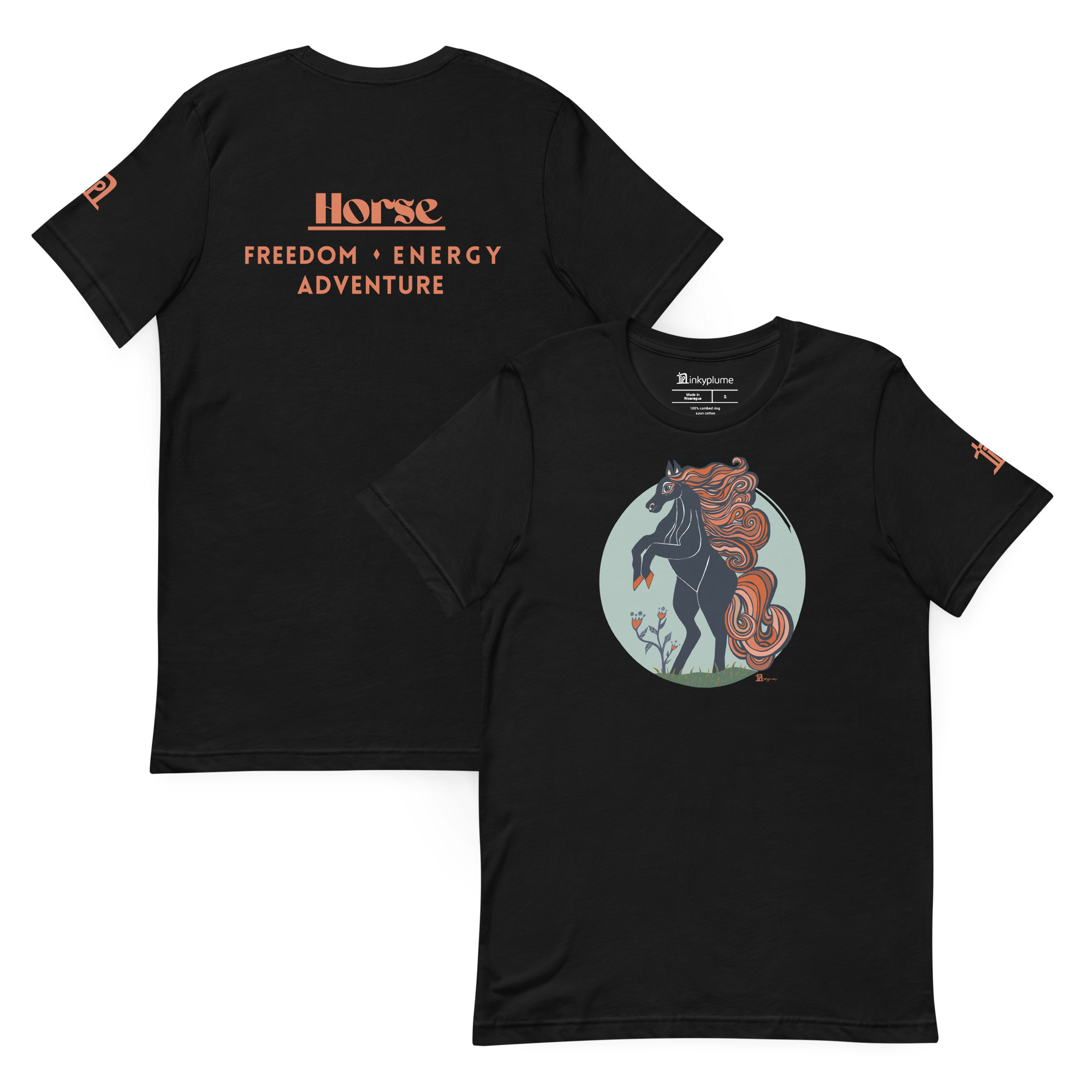 🐎 An adventurous Horse zodiac tee celebrating freedom, energy, and adventure — with matching traits across the back.