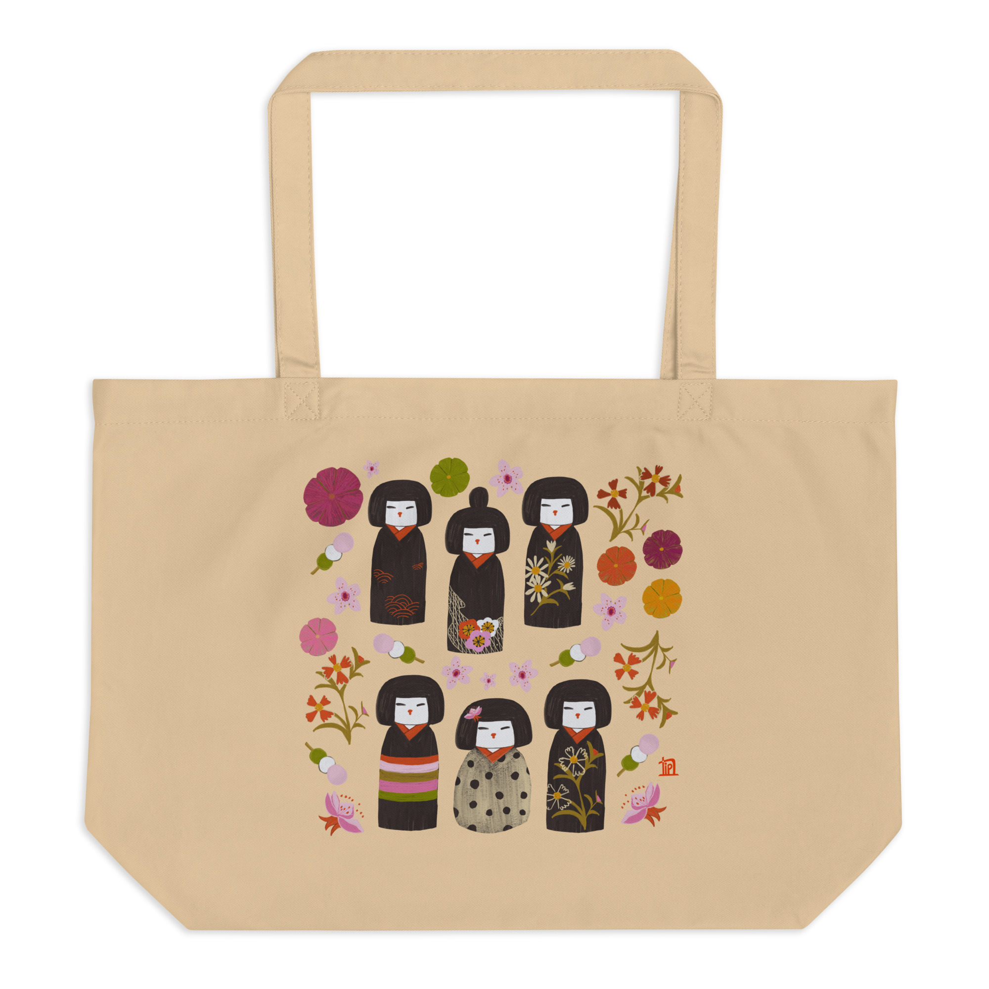Kokeshi Carnival Large Organic Cotton Tote Bag (Oyster)