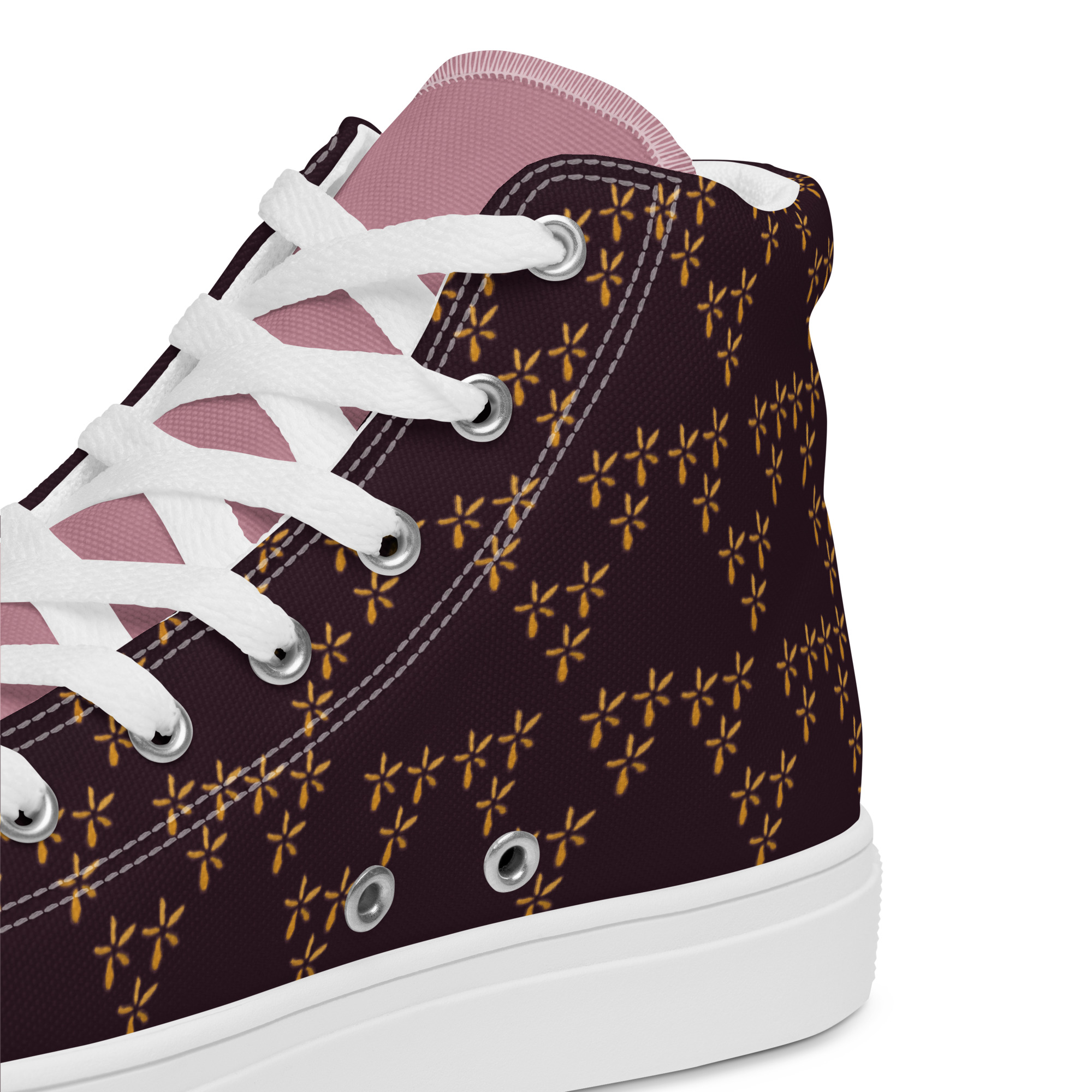 Step into a Citrus Summer with these zesty stunners! 🍋🌸 Bursting with golden lemons, lavender-toned blossoms, and playful pollinator-inspired patterns, these shoes are a fruity floral dream. Set against a rich dark magenta backdrop, they pack a juicy punch of color and contrast — from vibrant green leaves to bold triangle motifs made of pollen stars.